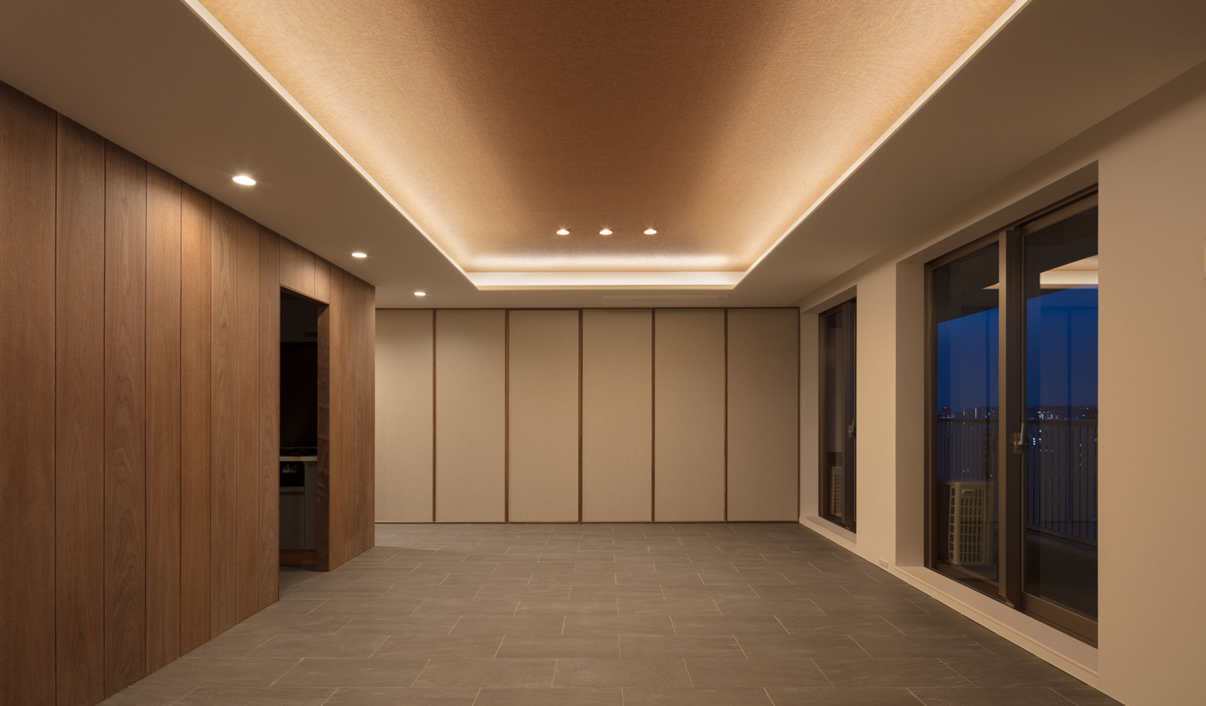 建具の存在を消すころで、リビング・ダイニングの空間性を引き立て